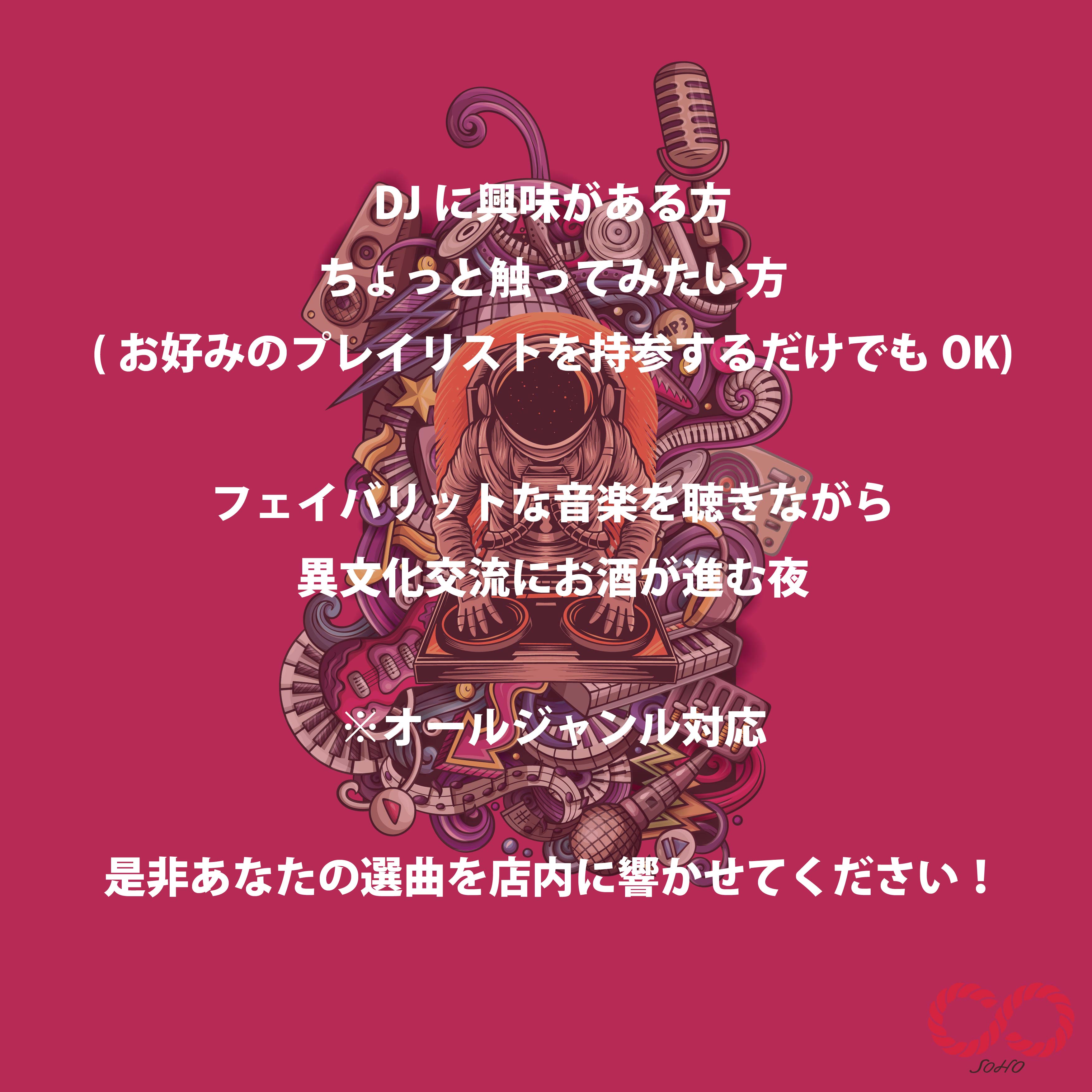 ※DJコントローラーはPioneer DDJ-FLX4が会場常設で使用できます。接続用ケーブルは適宜持ち込みいただくようお願いいたします。