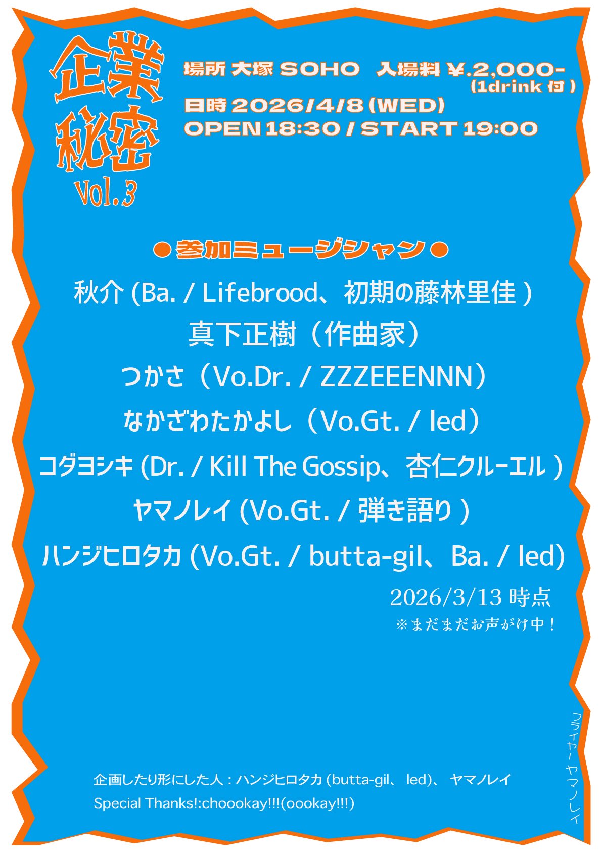 OPEN 18:30 / START 18:00 ENTRANCE¥2000(1Drink込み)